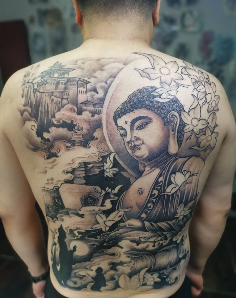释迦牟尼佛纹身图片_背部新传统纹身图案