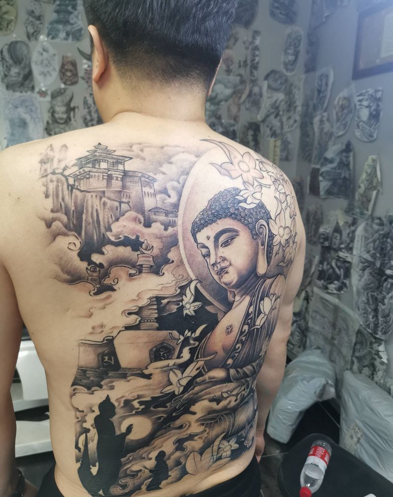 释迦牟尼佛纹身图片_背部新传统纹身图案