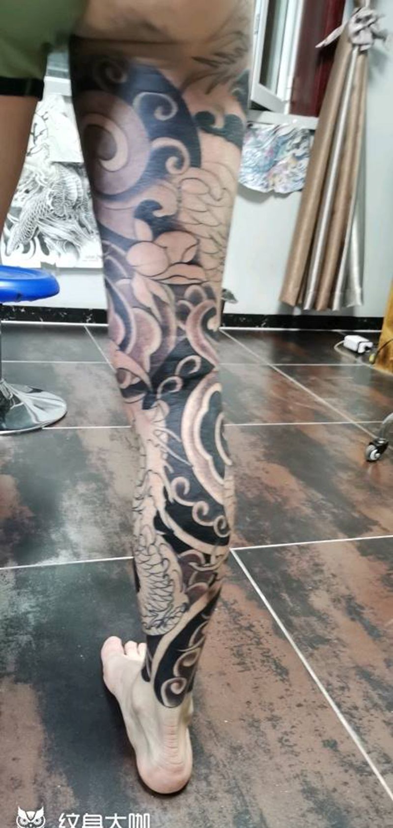 • T网红王老大花腿龙纹身图片_腿部新传统纹身图案