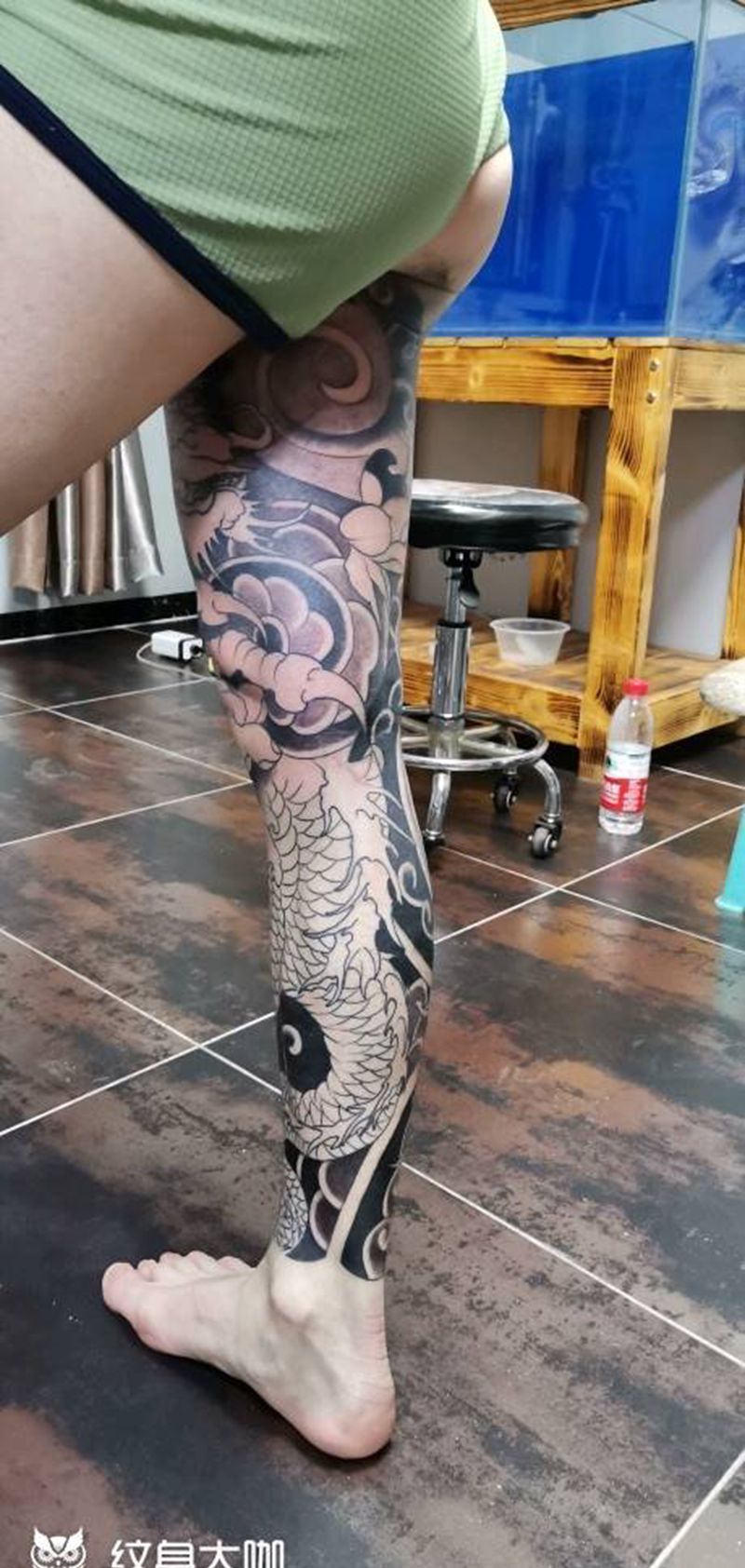 • T网红王老大花腿龙纹身图片_腿部新传统纹身图案