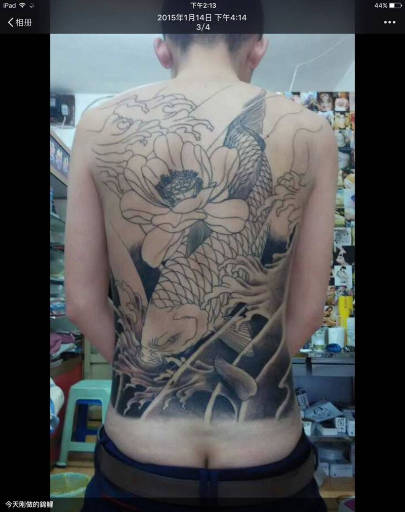 当前位置: 首页 >山西省大同市纹身店-大同纹身吧纹身图案>满背鲤鱼纹身图片