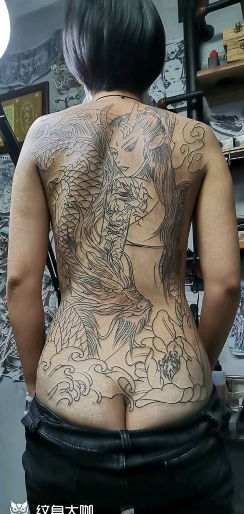 龙姬纹身图片_背部新传统纹身图案