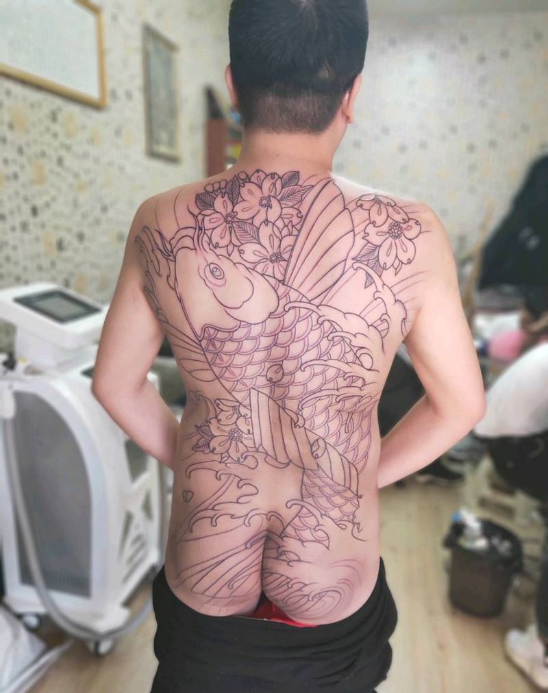 当前位置: 首页 >山西省大同市纹身店-大同纹身吧纹身图案>日式满背鲤鱼纹身图片