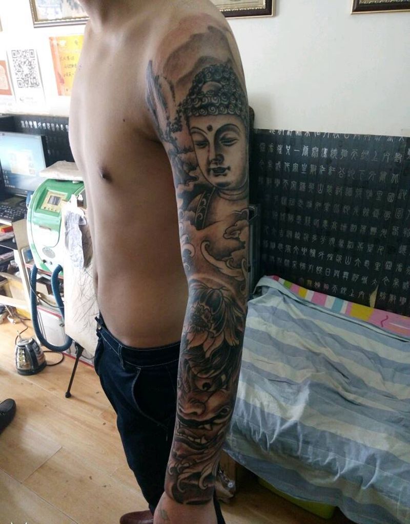 当前位置: 首页 >山西省大同市纹身店-大同纹身吧纹身图案>花臂佛纹身图片