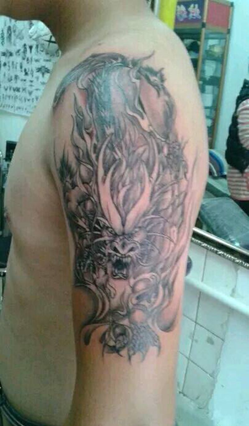 • 纹身吧推荐的披肩图腾半胛纹身图案作品展示