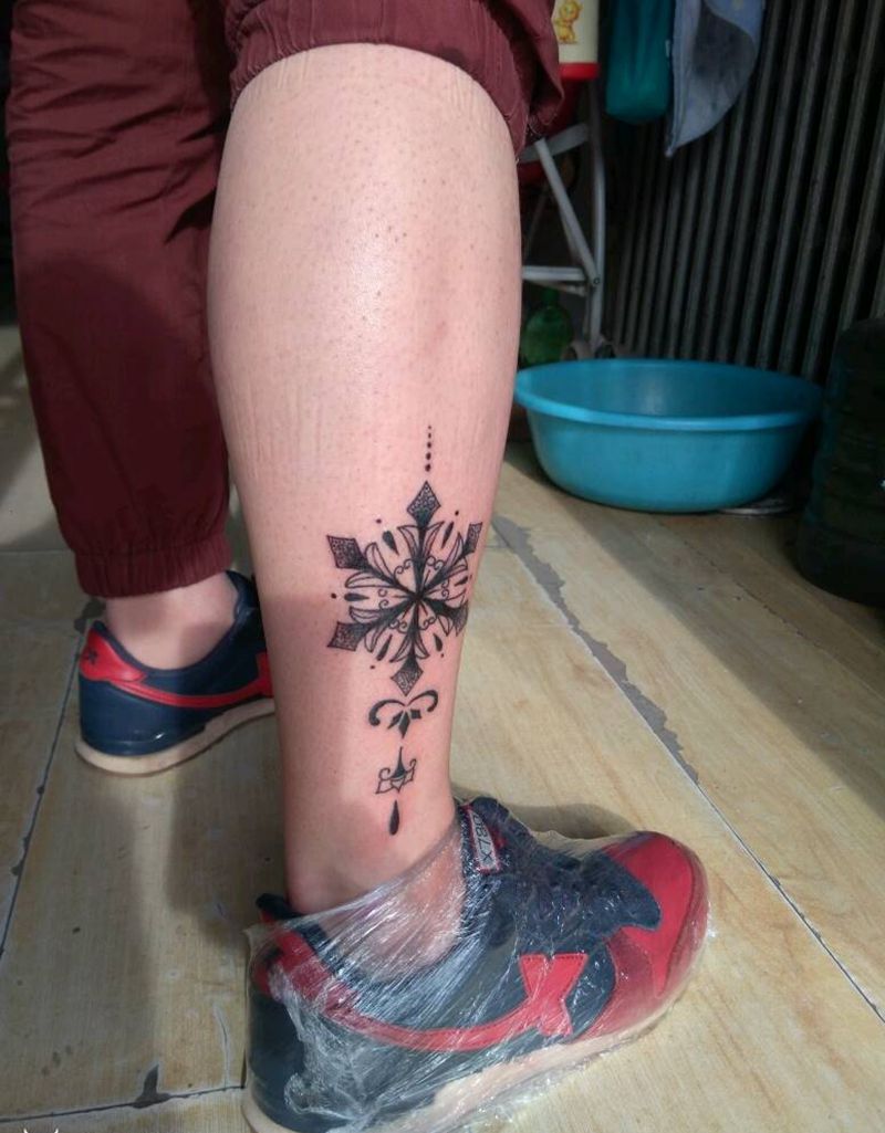 • T网红王老大花腿龙纹身图片_腿部新传统纹身图案