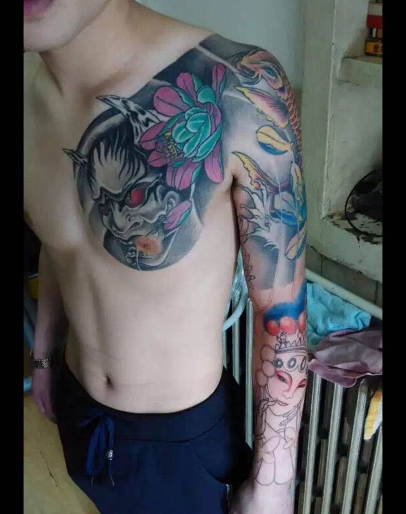 半甲花臂纹身图片