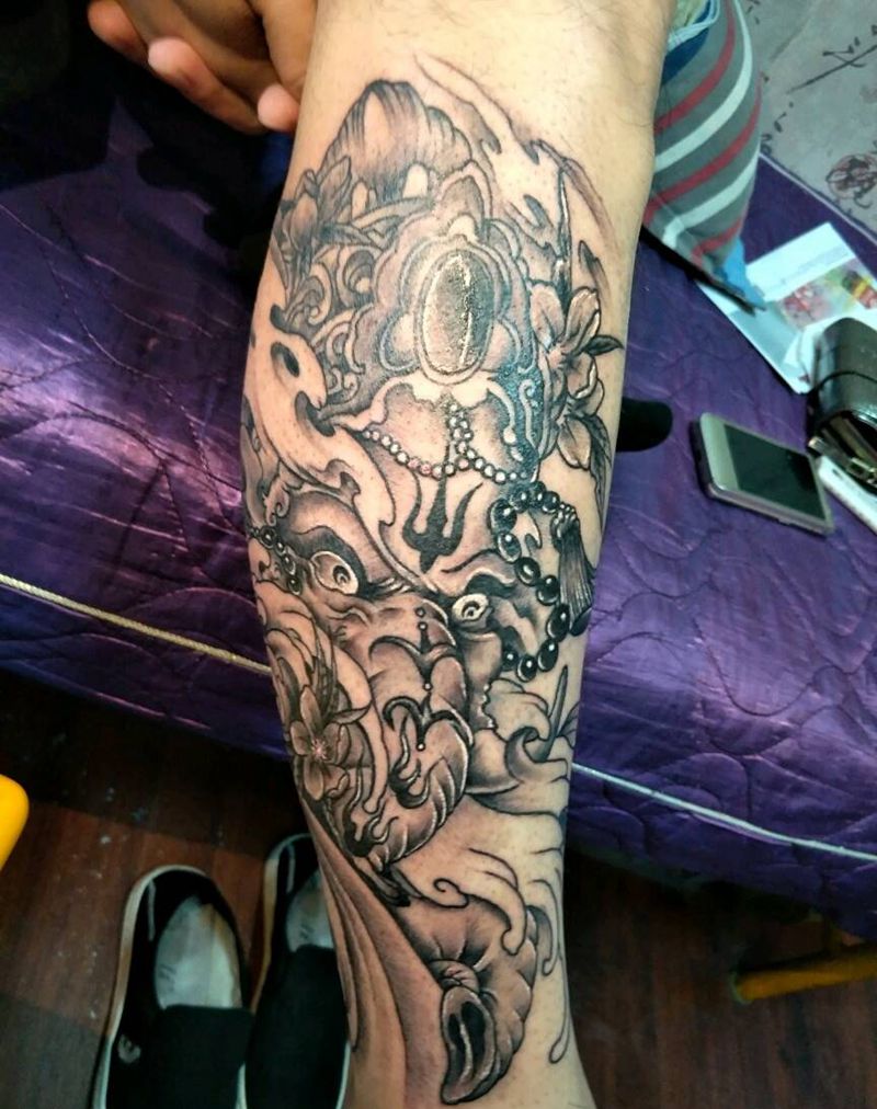 • T网红王老大花腿龙纹身图片_腿部新传统纹身图案