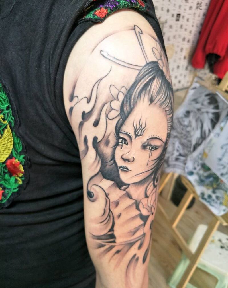 • 纹身吧推荐的披肩图腾半胛纹身图案作品展示