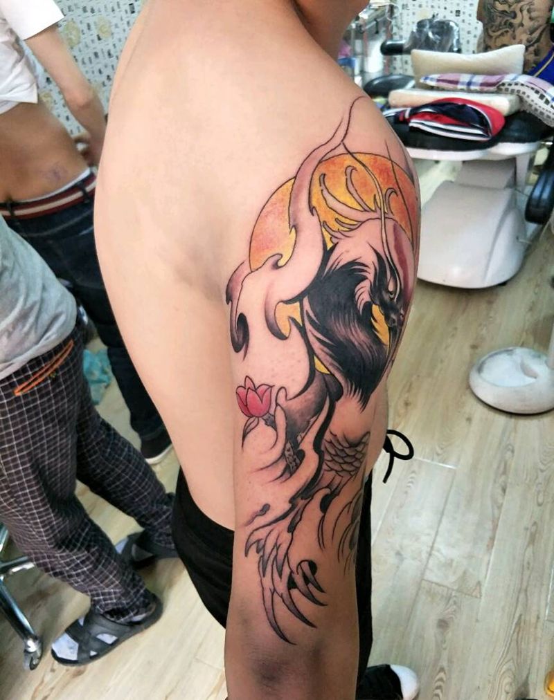 • T网红王老大花腿龙纹身图片_腿部新传统纹身图案