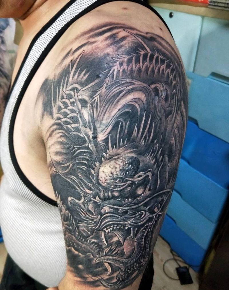 当前位置: 首页 >山西省大同市纹身店-大同纹身吧纹身图案>龙遮盖作品纹身图片
