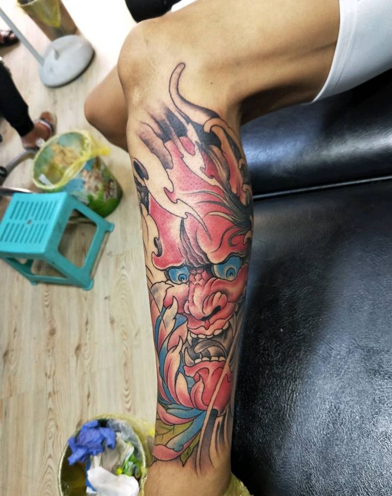 • T网红王老大花腿龙纹身图片_腿部新传统纹身图案