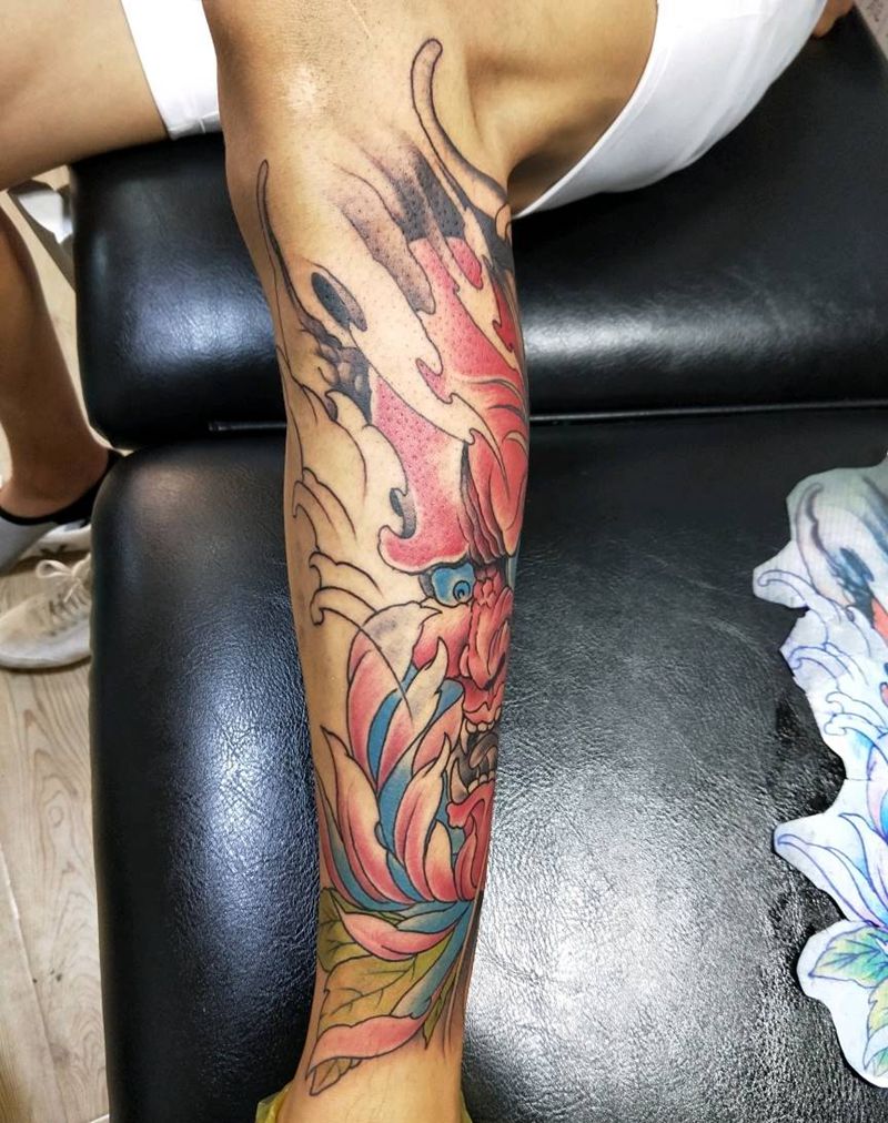 • T网红王老大花腿龙纹身图片_腿部新传统纹身图案