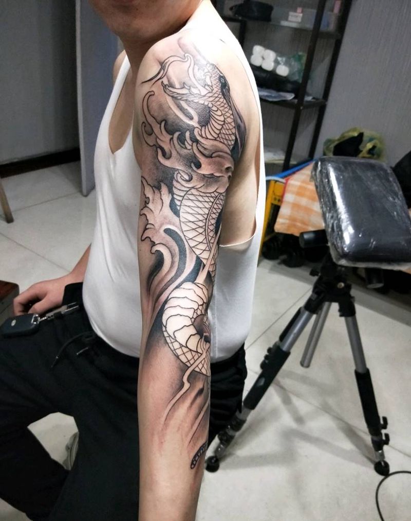 • T网红王老大花腿龙纹身图片_腿部新传统纹身图案