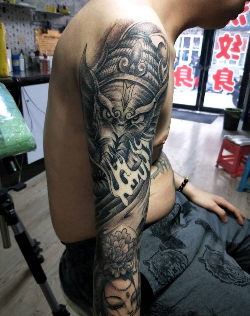 当前位置: 首页 >山西省大同市纹身店-大同纹身吧纹身图案>花旦象神花臂纹身图片