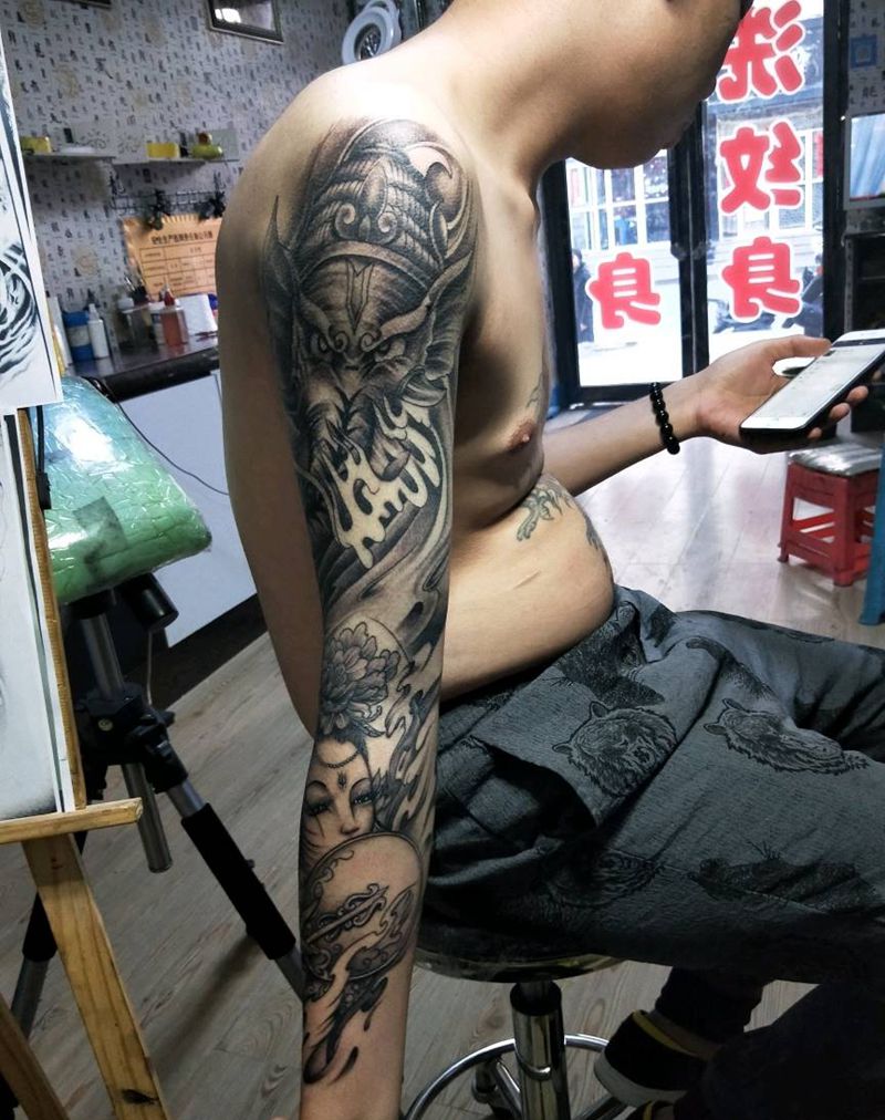 当前位置: 首页 >山西省大同市纹身店-大同纹身吧纹身图案>花旦象神花臂纹身图片