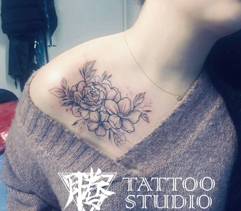 • 女性大花胸纹身_43张霸气漂亮的女性大花胸纹身图案作品