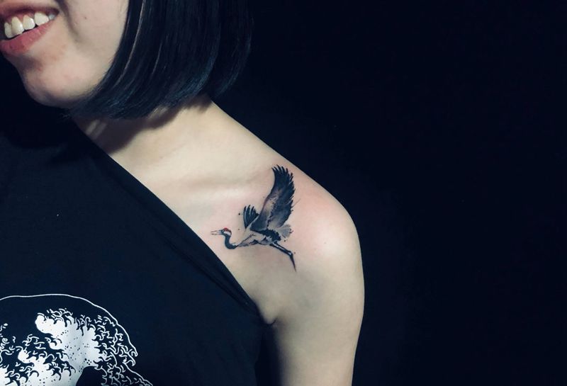 当前位置: 首页 >山西省太原市纹身店-腾TATTOO工作室纹身图案>水墨风-鹤纹身图片