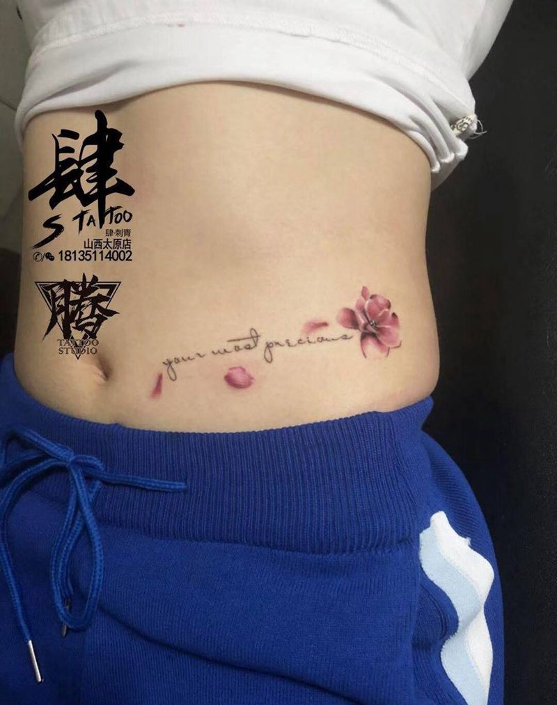 • T关于私处得爱!纹身图片_成品腹部清新字符图腾纹身图案