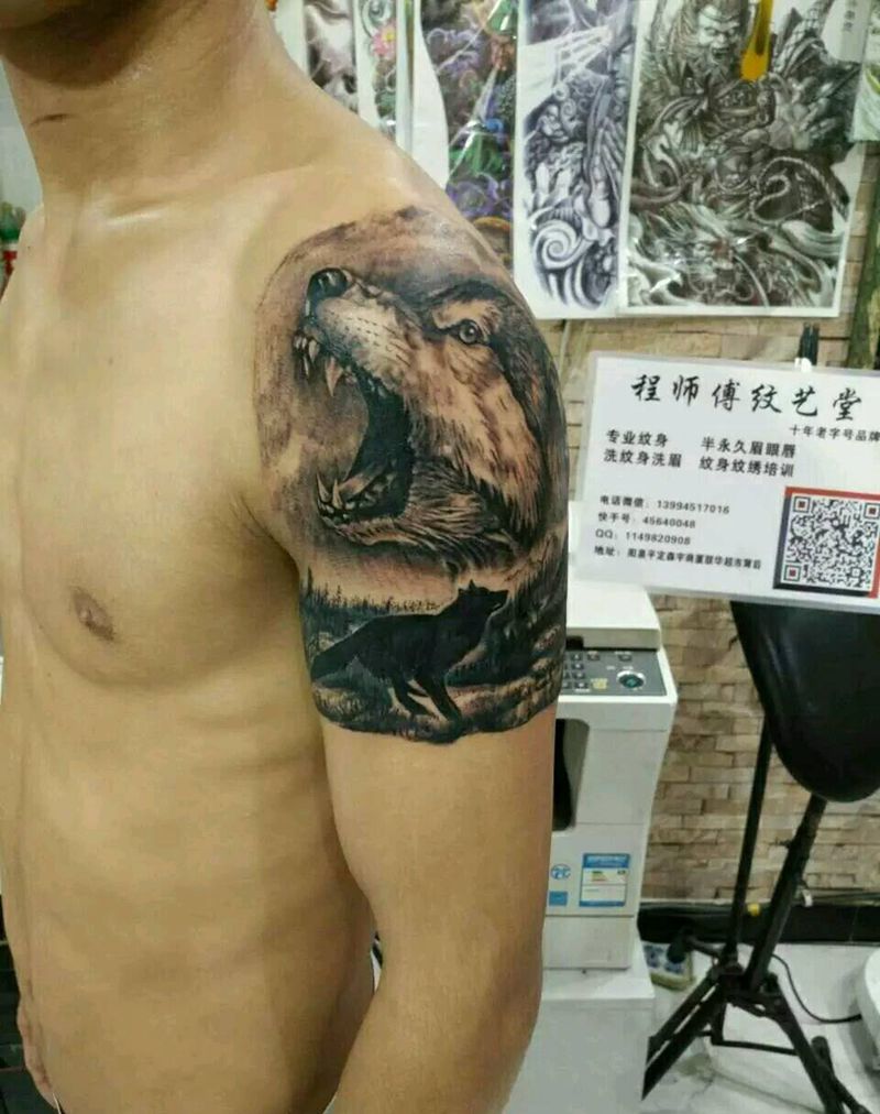 当前位置: 首页 >山西省阳泉市纹身店-程师傅纹艺堂纹身图案>遮盖狼头纹身图片