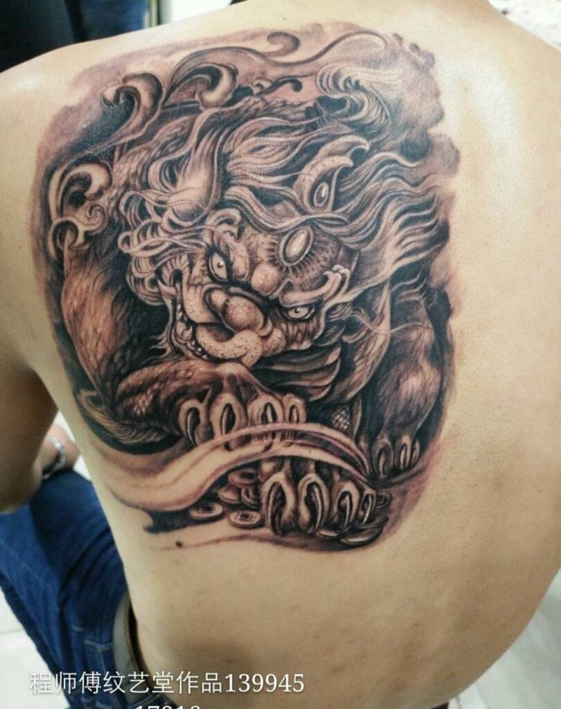 • 黑灰满背纹身图案