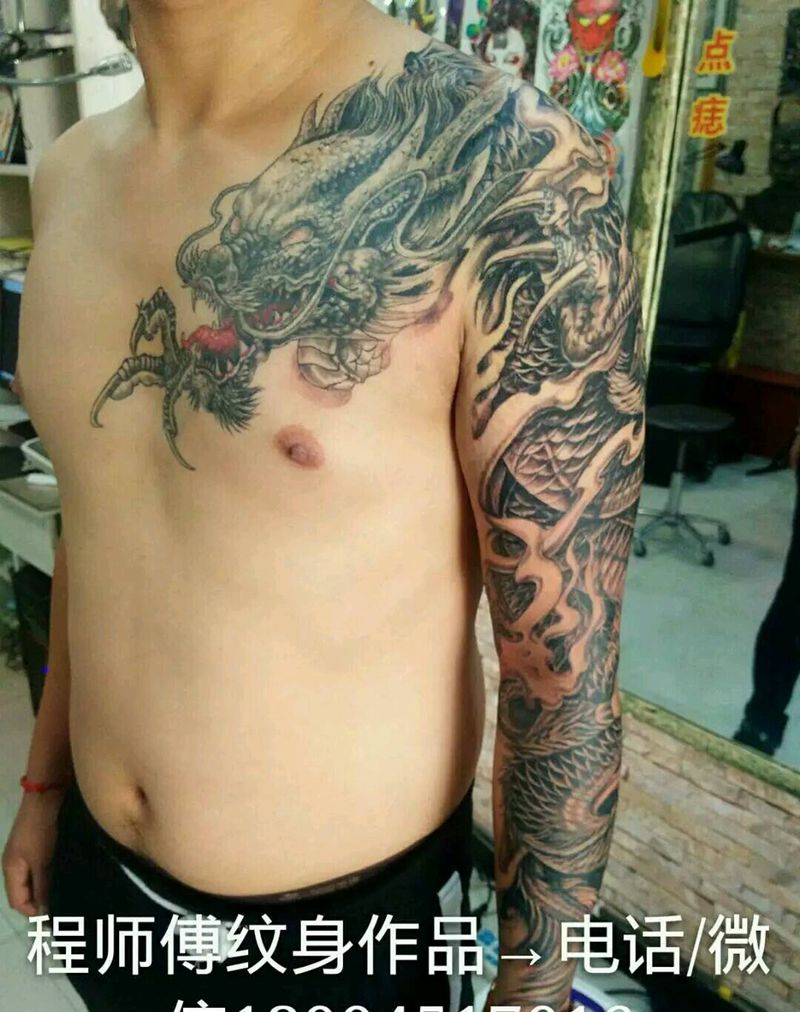 当前位置: 首页 >山西省阳泉市纹身店-程师傅纹艺堂纹身图案>过肩龙纹身图片