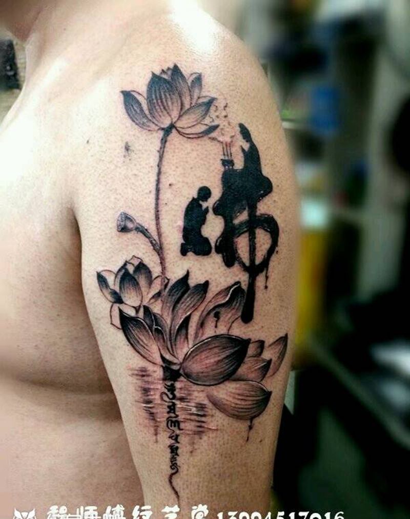当前位置: 首页 >山西省阳泉市纹身店-程师傅纹艺堂纹身图案>荷花佛纹身图片