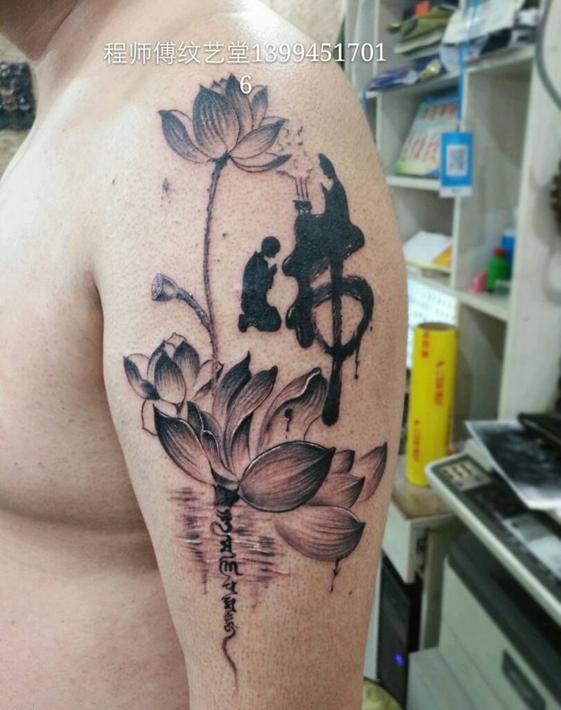 当前位置: 首页 >山西省阳泉市纹身店-程师傅纹艺堂纹身图案>荷花佛纹身图片