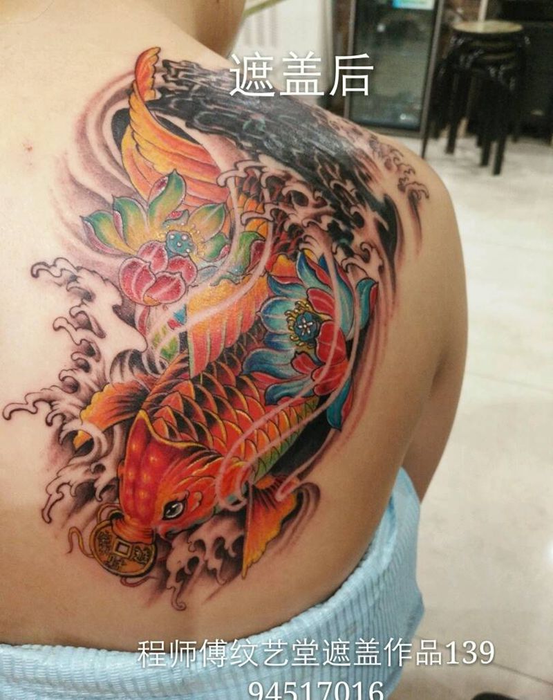 当前位置: 首页 >山西省阳泉市纹身店-程师傅纹艺堂纹身图案>彩鱼遮盖纹身图片