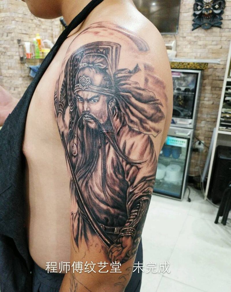 关公花臂未完成纹身图片