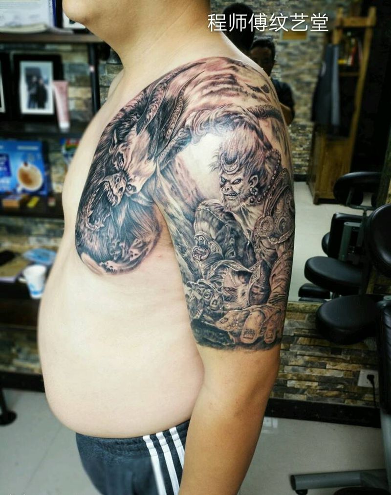 当前位置: 首页 >山西省阳泉市纹身店-程师傅纹艺堂纹身图案>斗战圣佛降魔半甲纹身图片