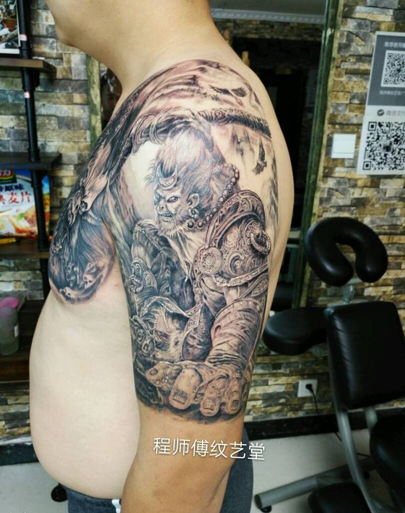 当前位置: 首页 >山西省阳泉市纹身店-程师傅纹艺堂纹身图案>斗战圣佛降魔半甲纹身图片