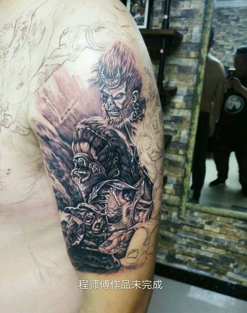 当前位置: 首页 >山西省阳泉市纹身店-程师傅纹艺堂纹身图案>斗战圣佛降魔半甲纹身图片