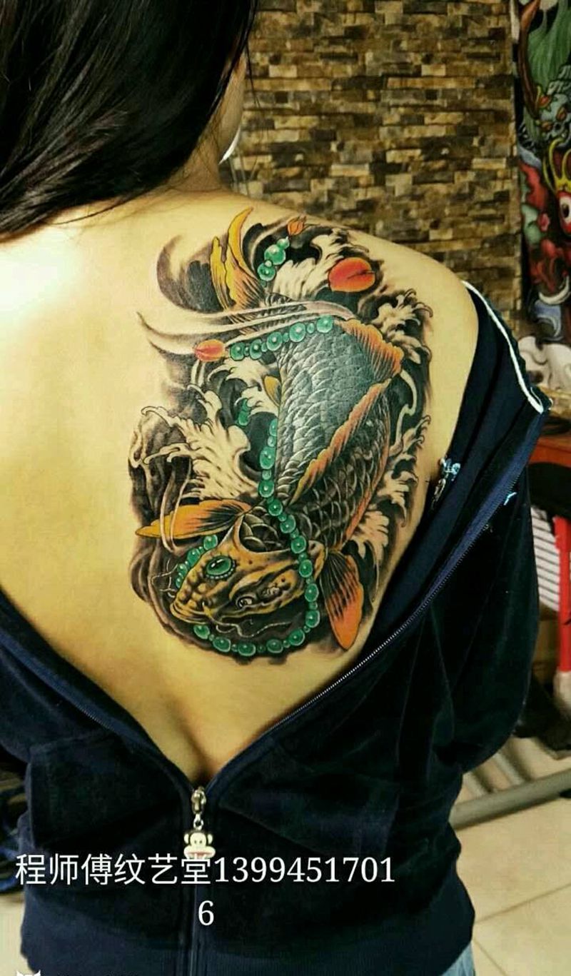 当前位置: 首页 >山西省阳泉市纹身店-程师傅纹艺堂纹身图案>富贵锦鲤纹身图片
