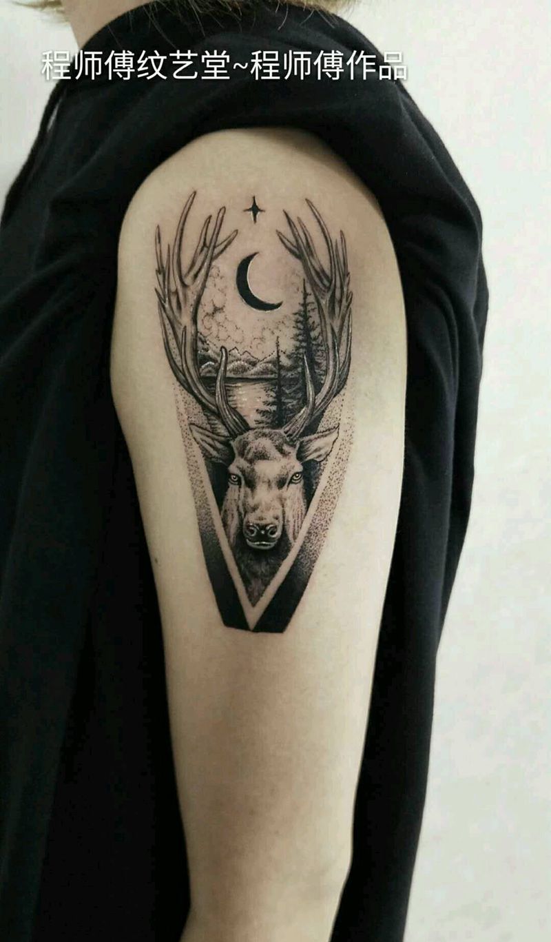 当前位置: 首页 >山西省阳泉市纹身店-程师傅纹艺堂纹身图案>点刺鹿遮盖胎记纹身图片