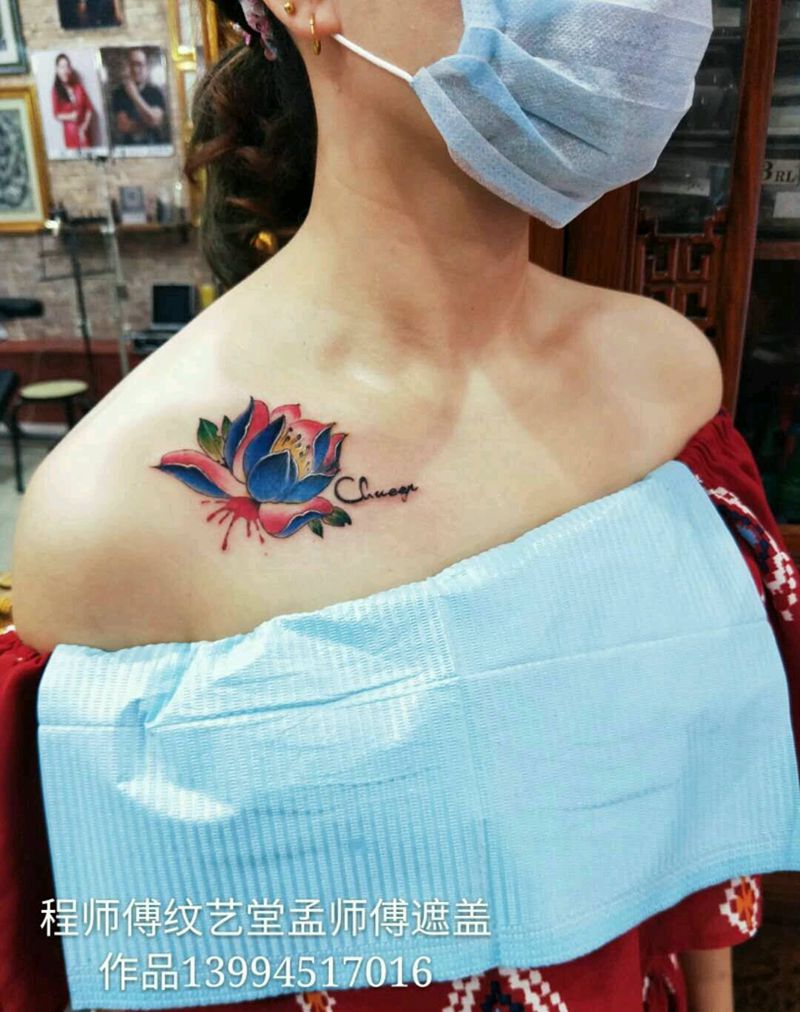 一组15张莲花纹身手