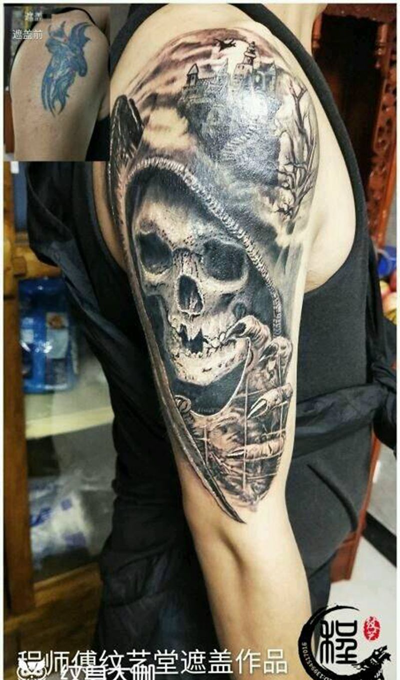 黑灰满背纹身图案