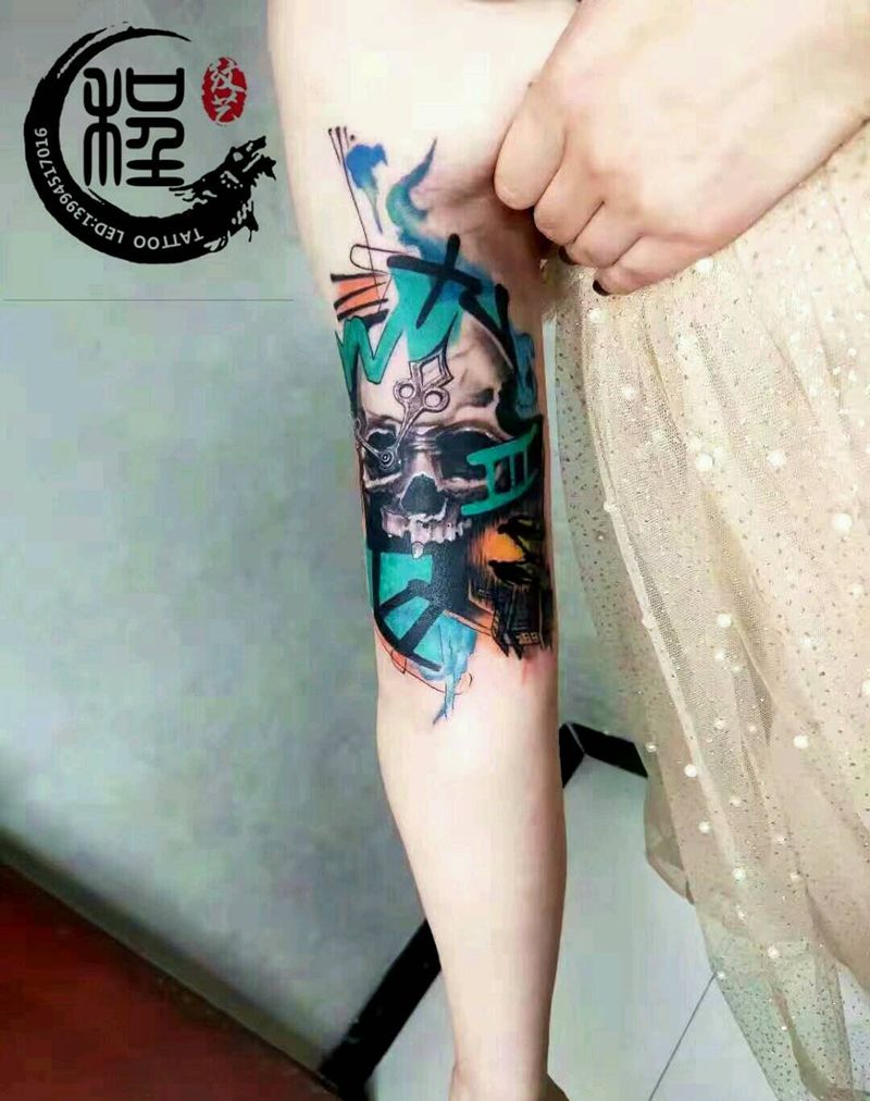 当前位置: 首页 >山西省阳泉市纹身店-程师傅纹艺堂纹身图案>遮盖作品~骷髅纹身图片