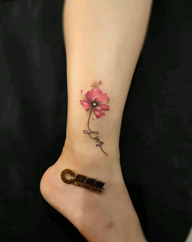 当前位置: 首页 >山西省阳泉市纹身店-程师傅纹艺堂纹身图案>水彩小花纹身图片_脚部水彩纹身图案