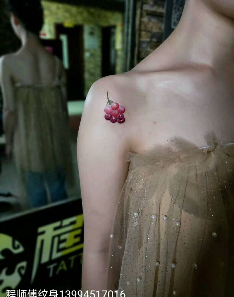 当前位置: 首页 >山西省阳泉市纹身店-程师傅纹艺堂纹身图案>葡萄纹身图片_肩部新传统纹身图案