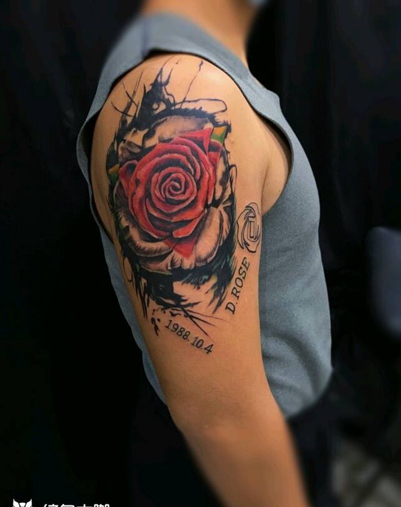玫瑰纹身图片_手部欧美写实纹身图案