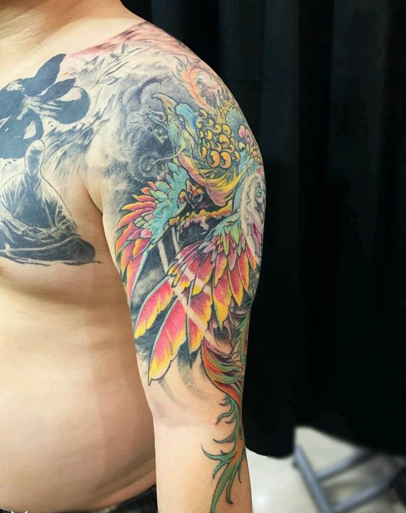 凤凰未完成纹身图片_肩部新传统纹身图案