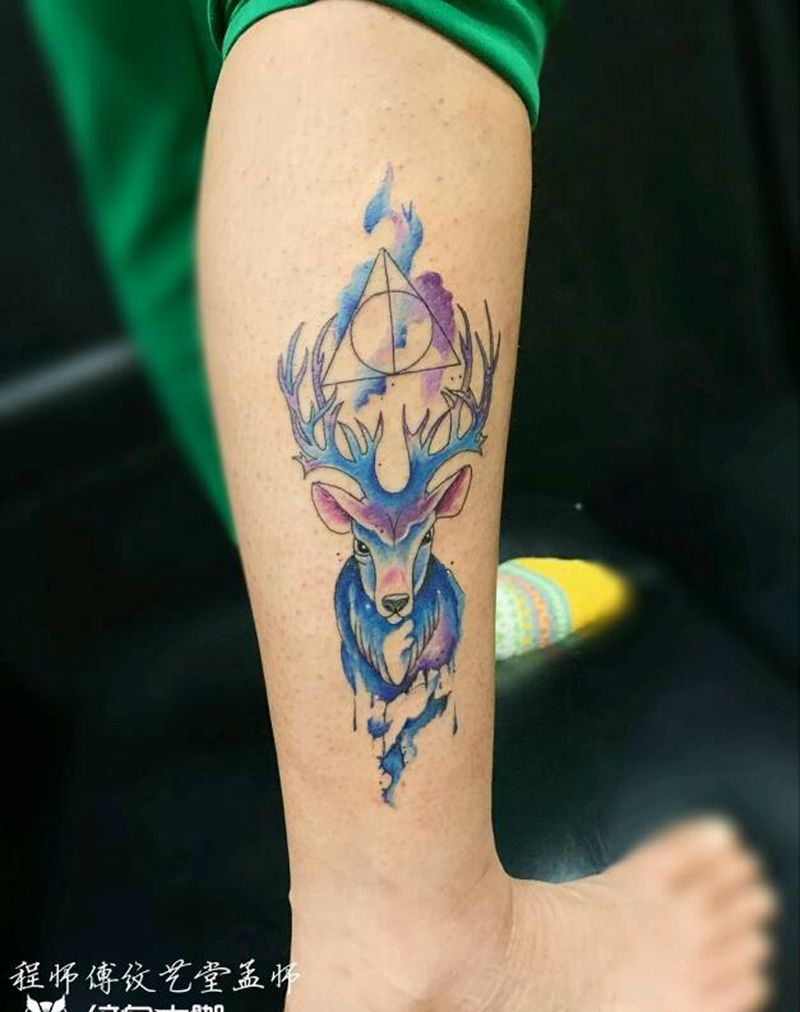 当前位置: 首页 >山西省阳泉市纹身店-程师傅纹艺堂纹身图案>小鹿纹身图片_腿部水彩纹身图案
