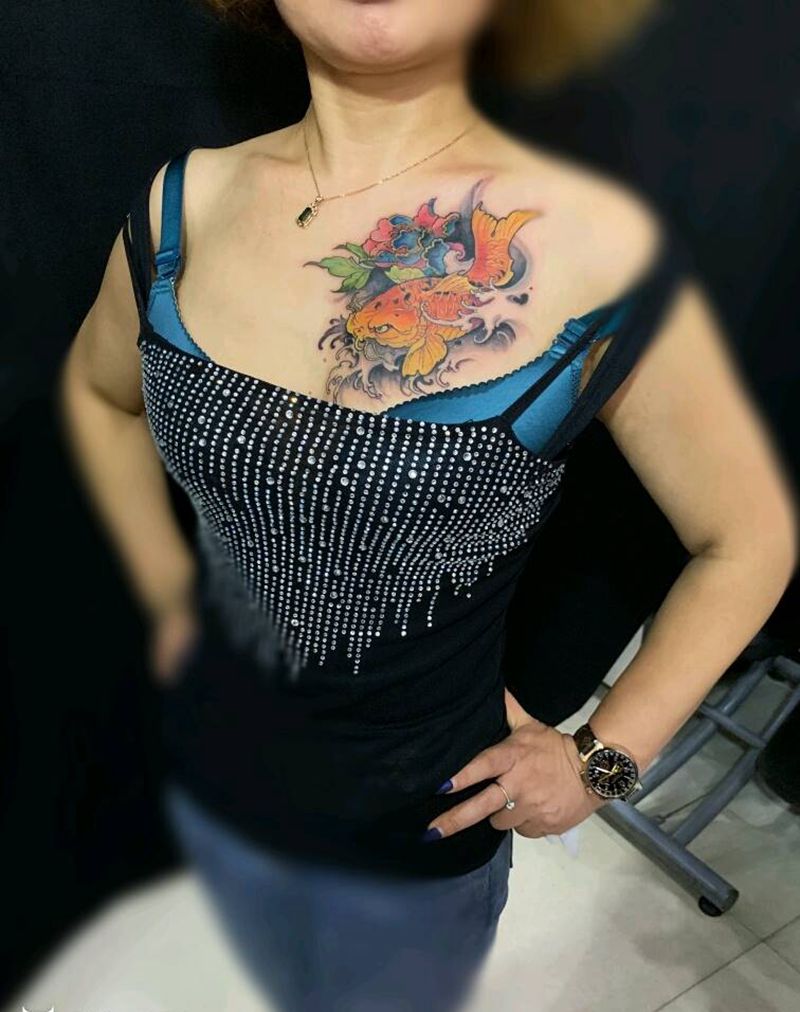 遮盖作品~鱼纹身图片_胸部新传统纹身图案