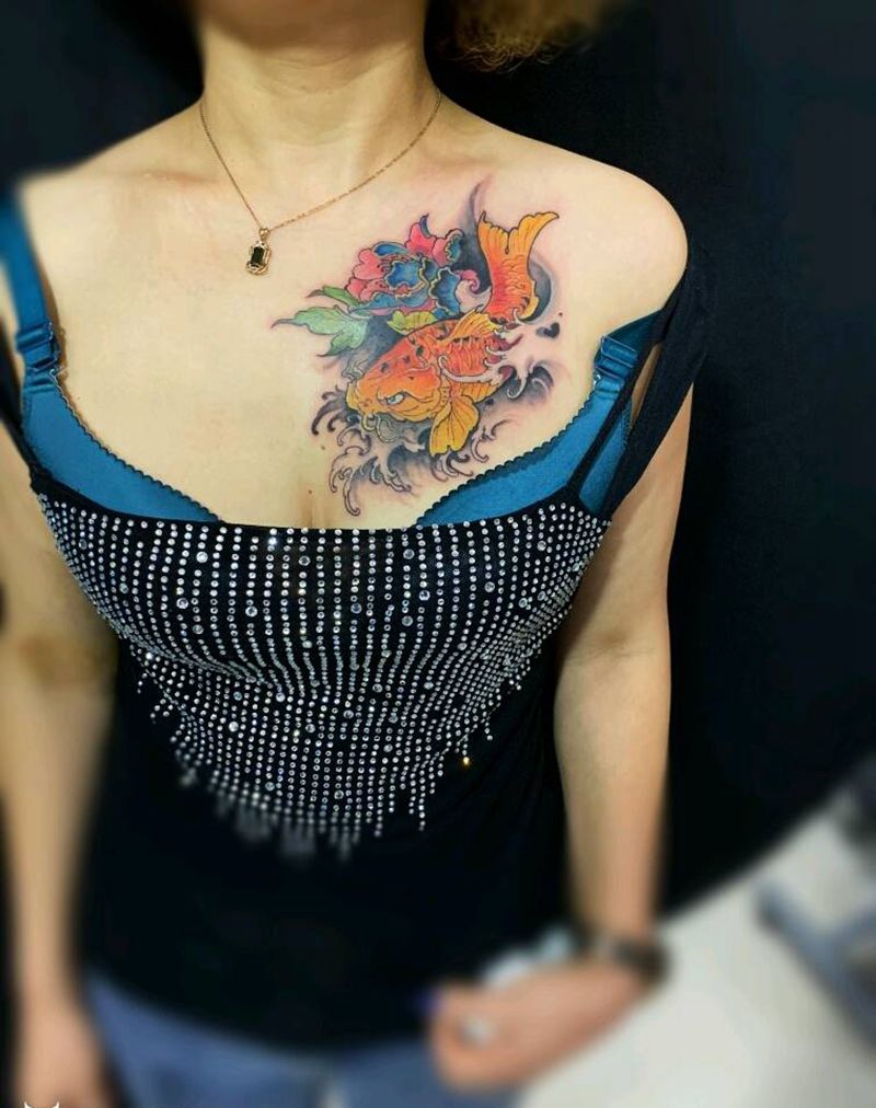 遮盖作品~鱼纹身图片_胸部新传统纹身图案