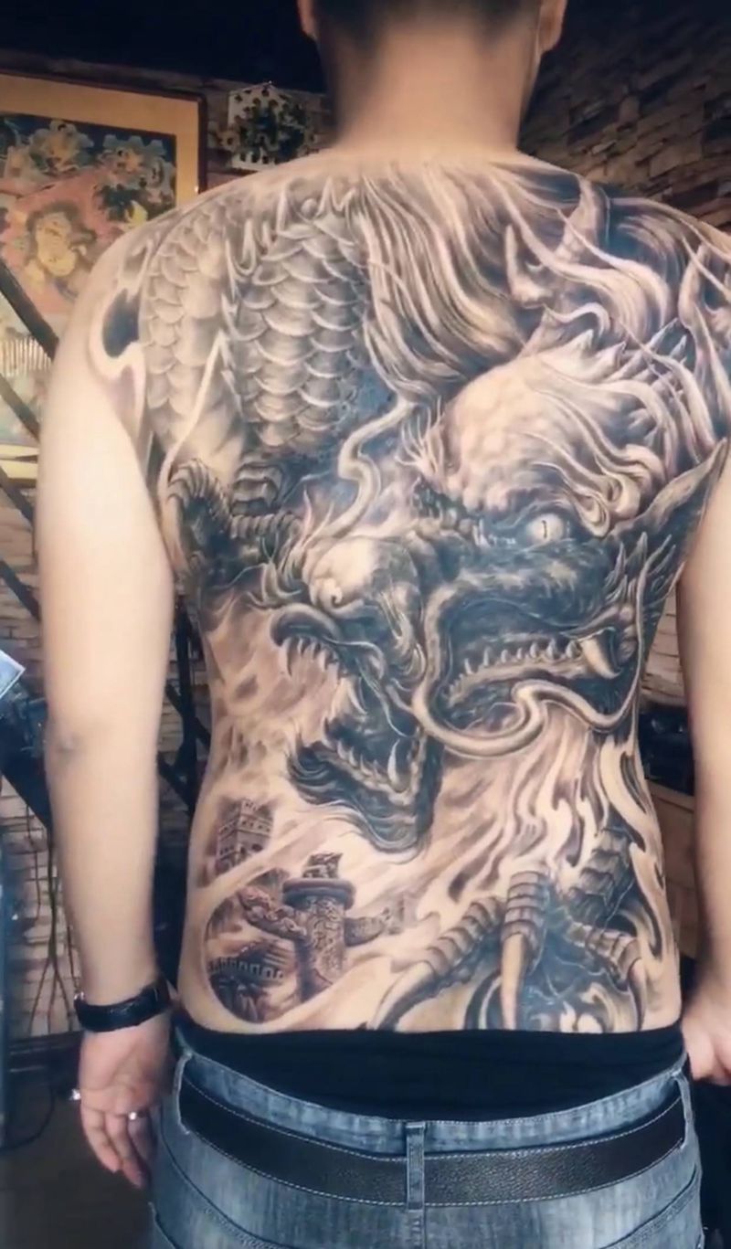 • T云龙九郎纹身图片_背部老传统云龙九郎纹身图案