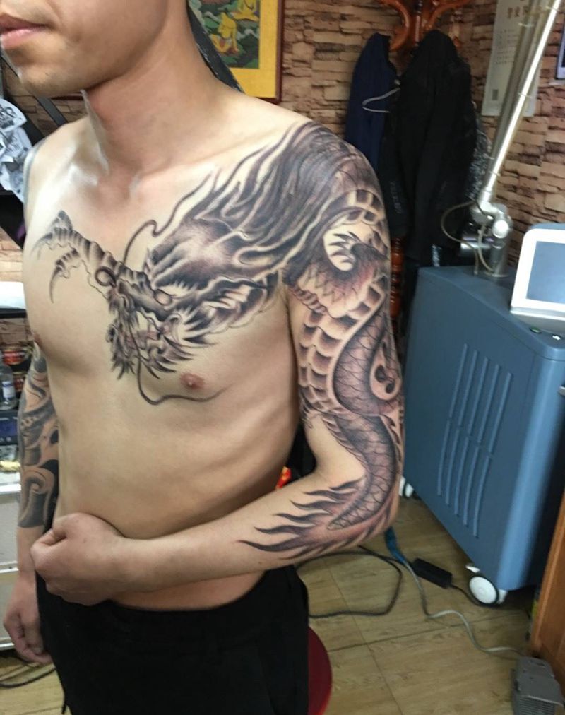 当前位置: 首页 >山西省大同市纹身店-大同老三纹身店纹身图案>过肩龙纹身图片