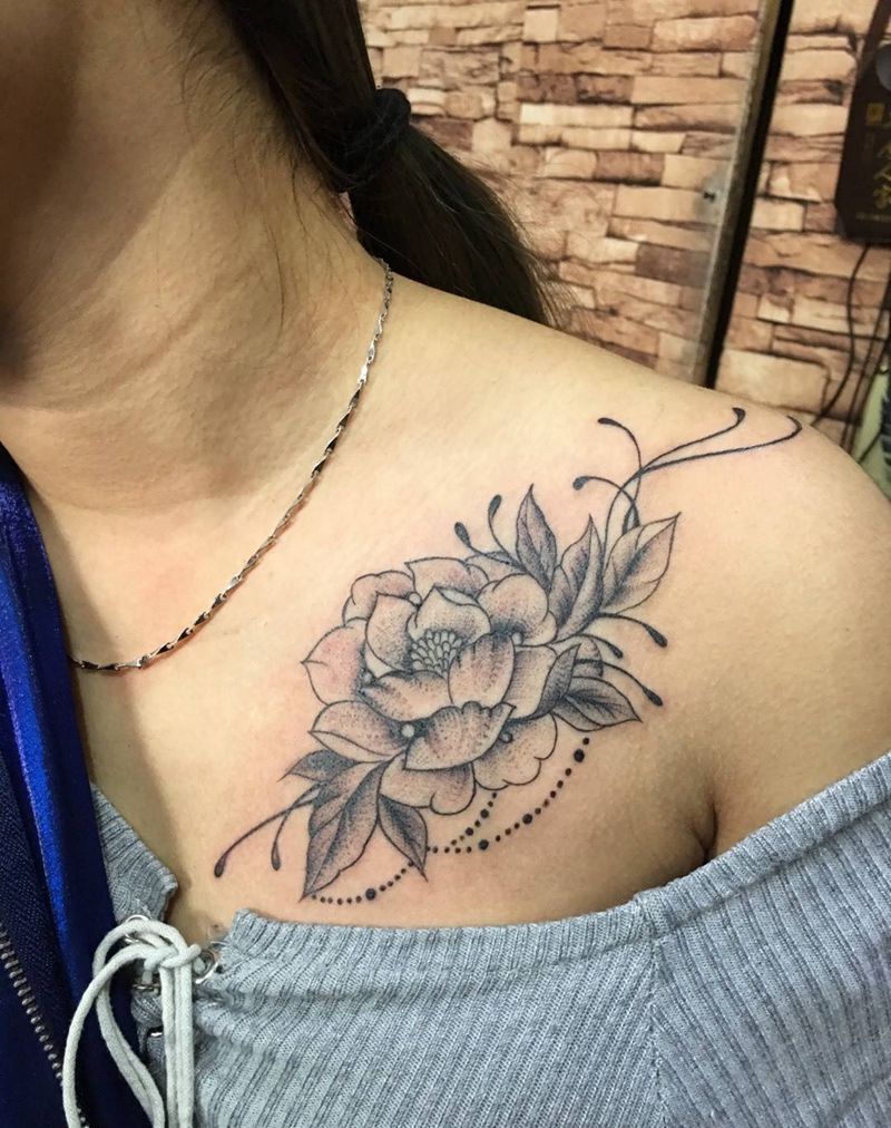 • 女性大花胸纹身_43张霸气漂亮的女性大花胸纹身图案作品