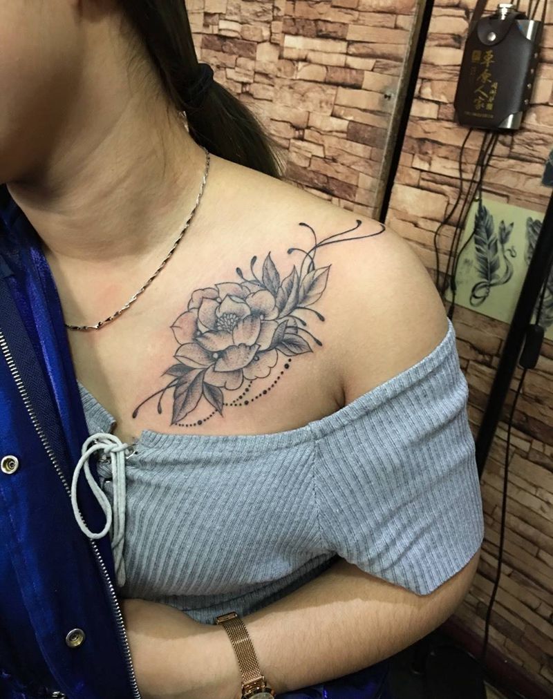 • 女性大花胸纹身_43张霸气漂亮的女性大花胸纹身图案作品