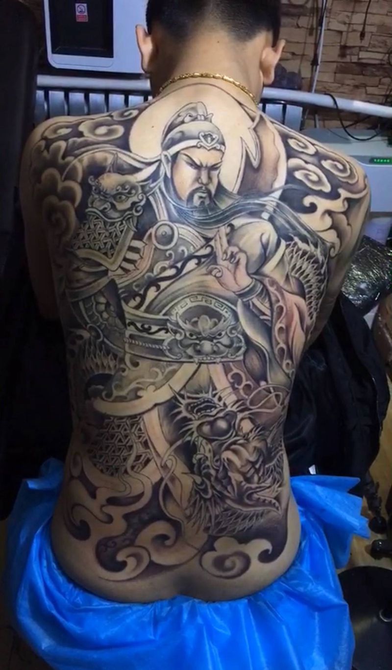 • 黑灰满背纹身图案